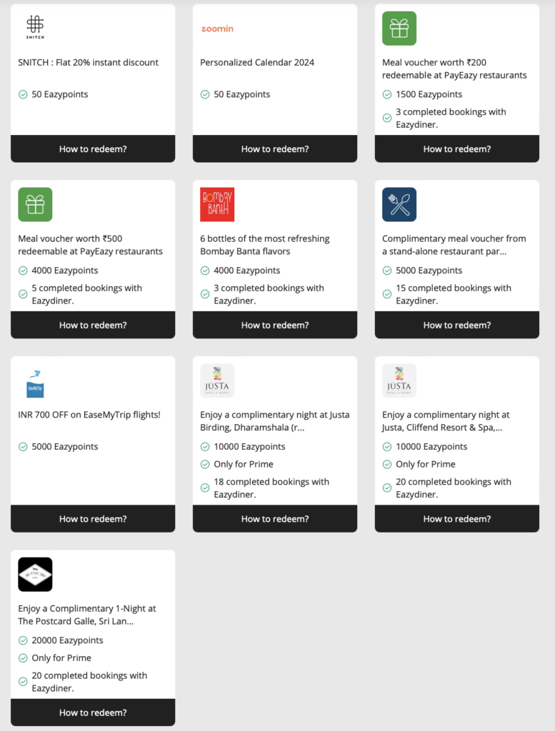 - You can redeem EazyPoints against Meal Vouchers, Restaurant events or free Hotel Stays as and when they are unlocked for you.